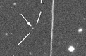The asteroid is currently faint, at magnitude 20.2 in the constellation Cetus. John provided us an image from the time of discovery (the asteroid is in the crosshairs in the middle in the image to the left). This is a 4-minute exposure taken through a 10" Schmidt-Cassegrain telescope on August 15, 2002 taken on the day he reported the object to the MPC.