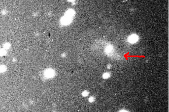 The first image shows IC1296 recorded for 1000 seconds on 8-6.1434-2013. The arrow points to the pinprick of light that is in the process of blossoming into SN2013ev.